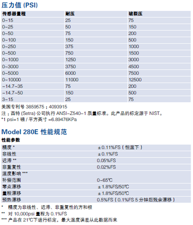 西特(Setra) Model 280E 是用来测量气体或液体压力的传感器/ 变送器,是专为满足那些要求结构坚固、高性能、性能价格比高的用户应用而设计。