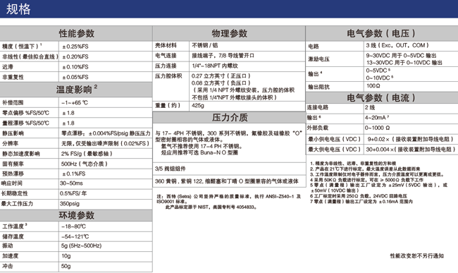 西特(Setra)Model 230 是专为液体或气体差压测量而设计的湿 湿型高输出低差压传感器。它由一个快速响应的电容敏感元件和专用信号处理电路组成,输出与压力相对应的高精度线性信号。