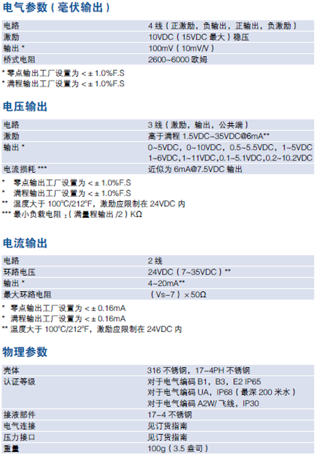 使用已经充分验证的惠斯通电桥原理,一个通过化学气相沉积(CVD)在不锈钢衬底上的硅和氧化硅的敏感元件构成一个非常灵敏精确的多晶硅应变仪。应变仪的各元件在原子级被焊接在一起,保证了应变仪的强度和完成性,它超越了早期用粘接剂构成的应变仪压力敏感元件。一个专用的ASIC 电路完成信号的放大和温度补偿,这种技术向用户提供了灵活的输出和压力范围配置、设置零点和满程公差,并保证了产品的互换性。