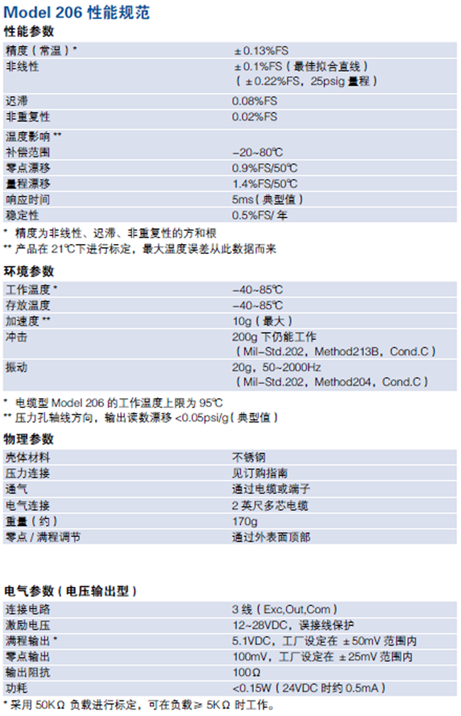 每一个Model 206 压力传感器都由西特公司富有经验的生产部门制造组装,并经严格的全面测试,每一个部门在制造测试过程中都遵循高的质量标准。所有这些保证了西特公司在产品质量、设计灵活性和交货等方面具有明显的竞争优势。