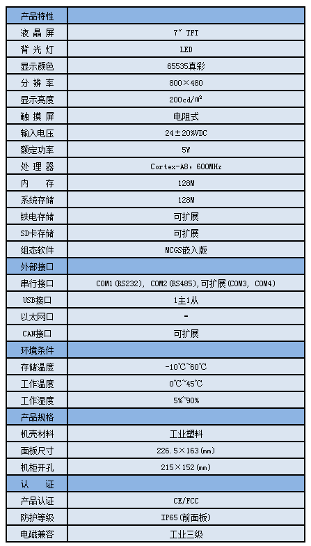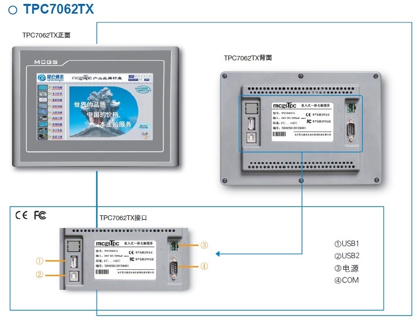 TPC7062TX,是一套以先进的Cortex-A8 CPU为核心(主频600MHz)的高性能嵌入式一体化触摸屏。该产品设计采用了7英寸高亮度TFT液晶显示屏(分辨率800×480),四线电阻式触摸屏(分辨率4096×4096)。同时还预装了MCGS嵌入式组态软件(运行版),具备强大的图像显示和数据处理功能。