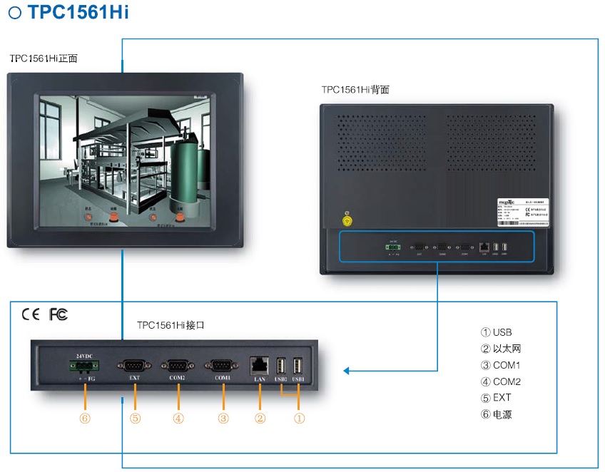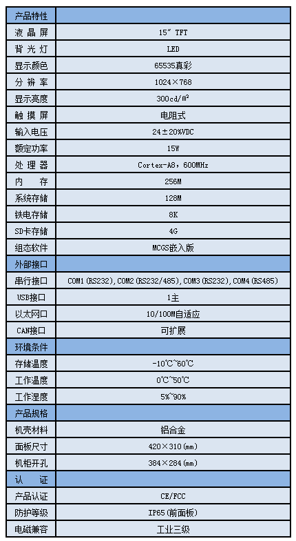 TPC1561Hi,是一套以先进的Cortex-A8 CPU为核心(主频600MHz)的高性能嵌入式一体化触摸屏。该产品设计采用了15英寸高亮度TFT液晶显示屏(分辨率1024×768),四线电阻式触摸屏(分辨率4096×4096),以及具有良好的电磁屏蔽性,美观坚固的铝合金结构。同时还预装了MCGS嵌入式组态软件(运行版),具备强大的图像显示和数据处理功能。